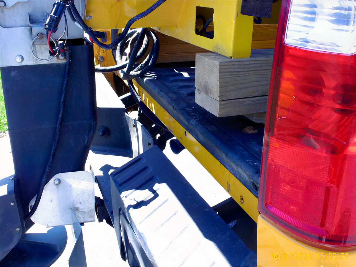 Fisher 8' XLS snowplow, with retractable wings. Full cutting width of plow is 10' with wings expanded.