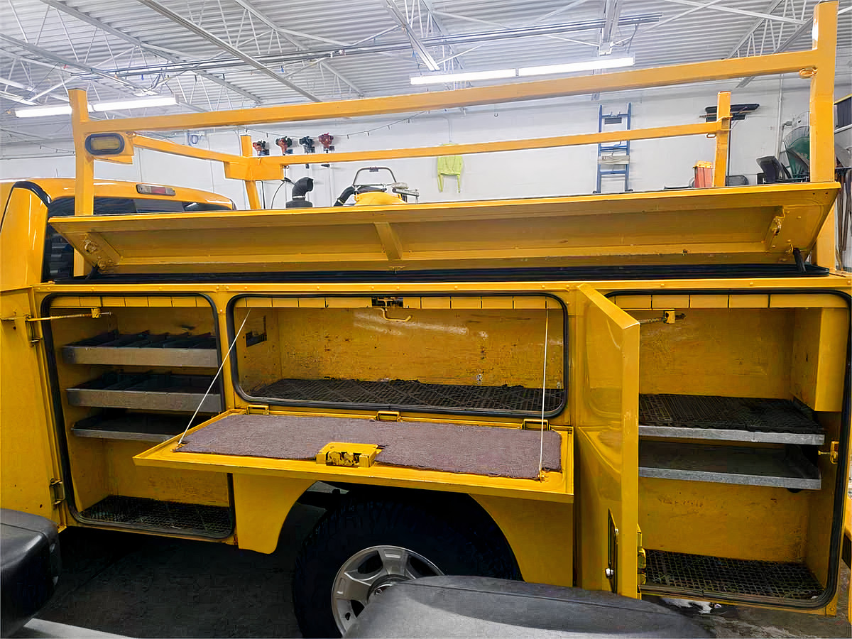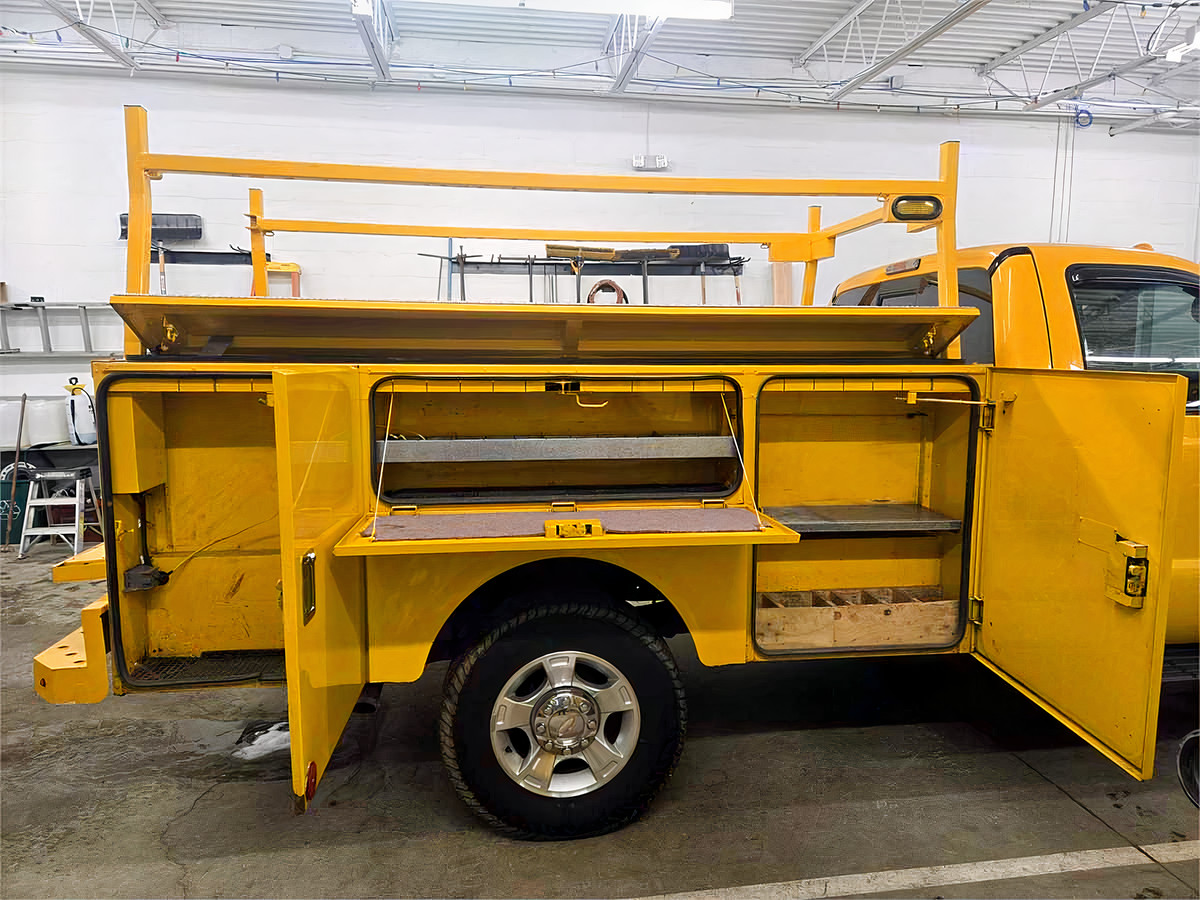9’ Stahl Utility body with custom heavy duty ladder/pipe rack