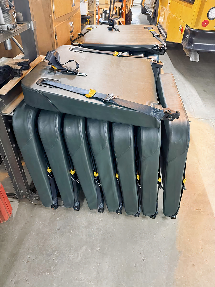 These premium seats were removed from a 2026 Thomas C2 bus immediately upon delivery due to incorrect specifications and have never been placed in service. All units are fully assembled and remain in unused, like-new condition. This offering includes 16 seat backs with integrated seatbelts, making them an excellent choice for replacements, fleet upgrades, or new installations.